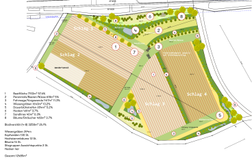 - Es werden eine Vielzahl verschiedener Biodiversitätselemente/-flächen integriert.